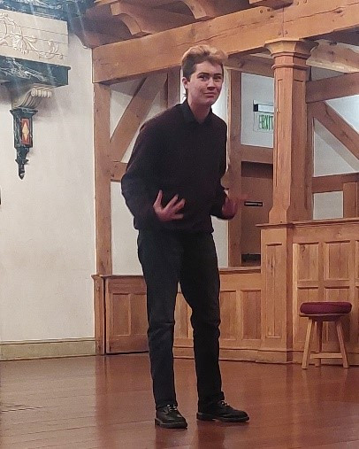 And the winner is⦠Lyra Day Tusing, with a stunning performance portraying Julia, from The Two Gentlemen of Verona, Act 1, Scene 1, as well as Sonnet 29. There were so many strong performances, but Lyra shot the lights out!