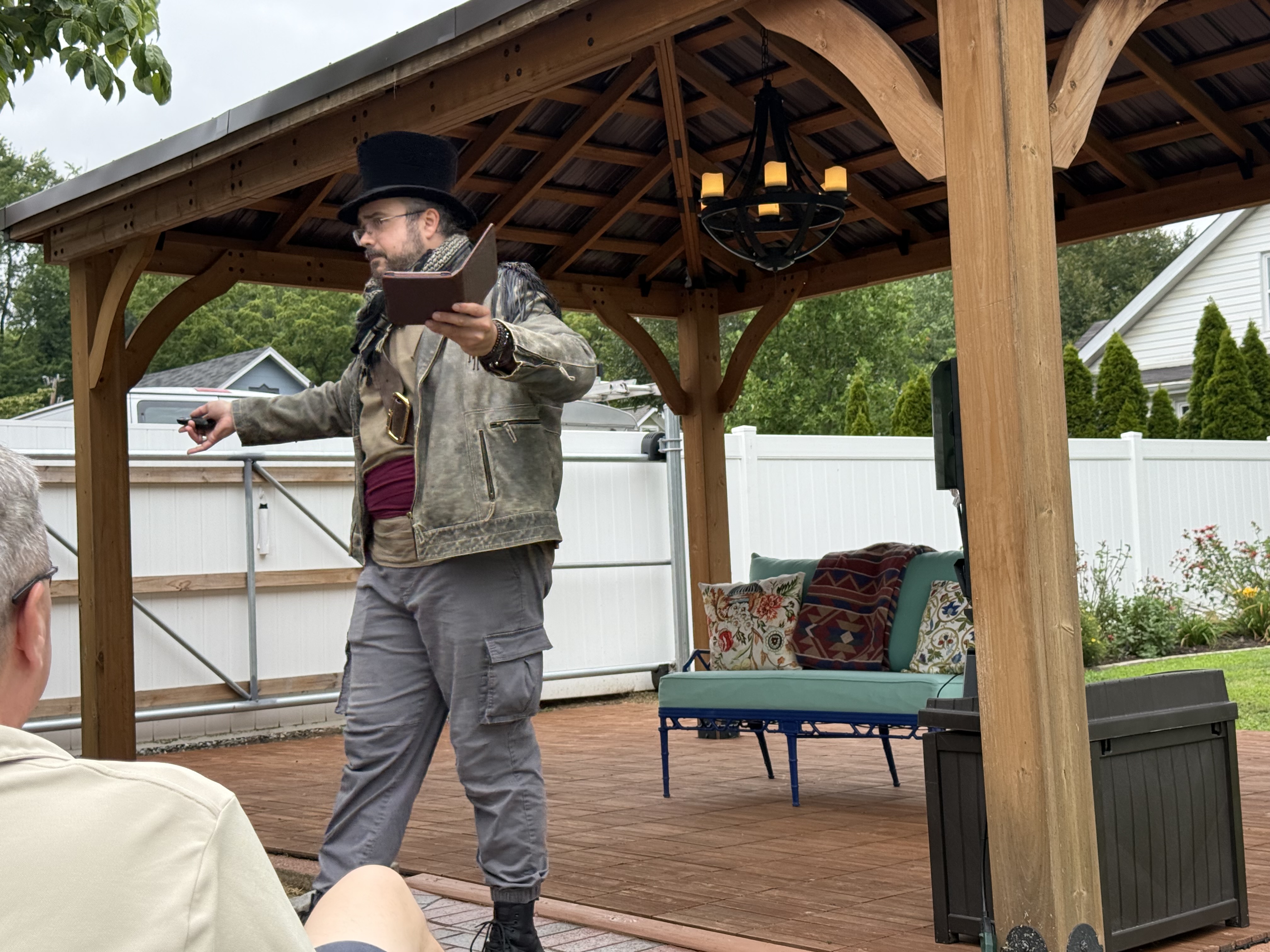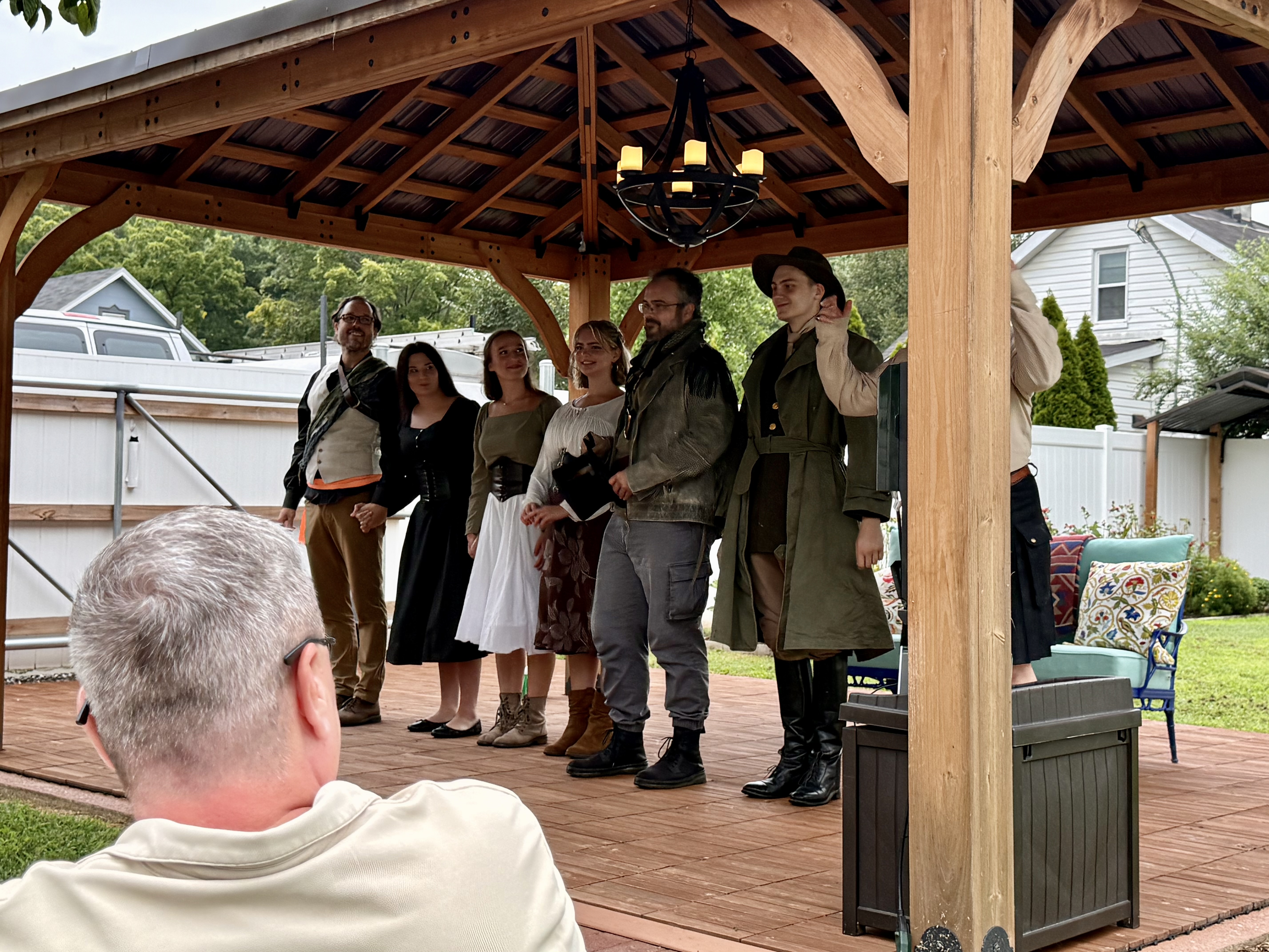 On August 1st, 2025, the ESU Board of Directors was invited to attend a Shakespeare Garden Party at Casa Cottage in Fredericksburg, VA. “Queen Charlottes’ Villeins”, headquartered here in Charlottesville, performed.