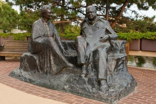 In 1984, the ESU Kansas City Branch was a major benefactor to help fund a permanent bronze statue of Winston and Clementine Churchill in a prominent location in Kansas City. The statue was designed by British sculptor Oscar Nemon, who had created several Churchill works. The sculpture is titled, “Married Love” and at 6 feet by 12 feet, it is a larger version of the original at Blenheim Palace in Oxfordshire, England, where Churchill was born and later proposed to Clementine.